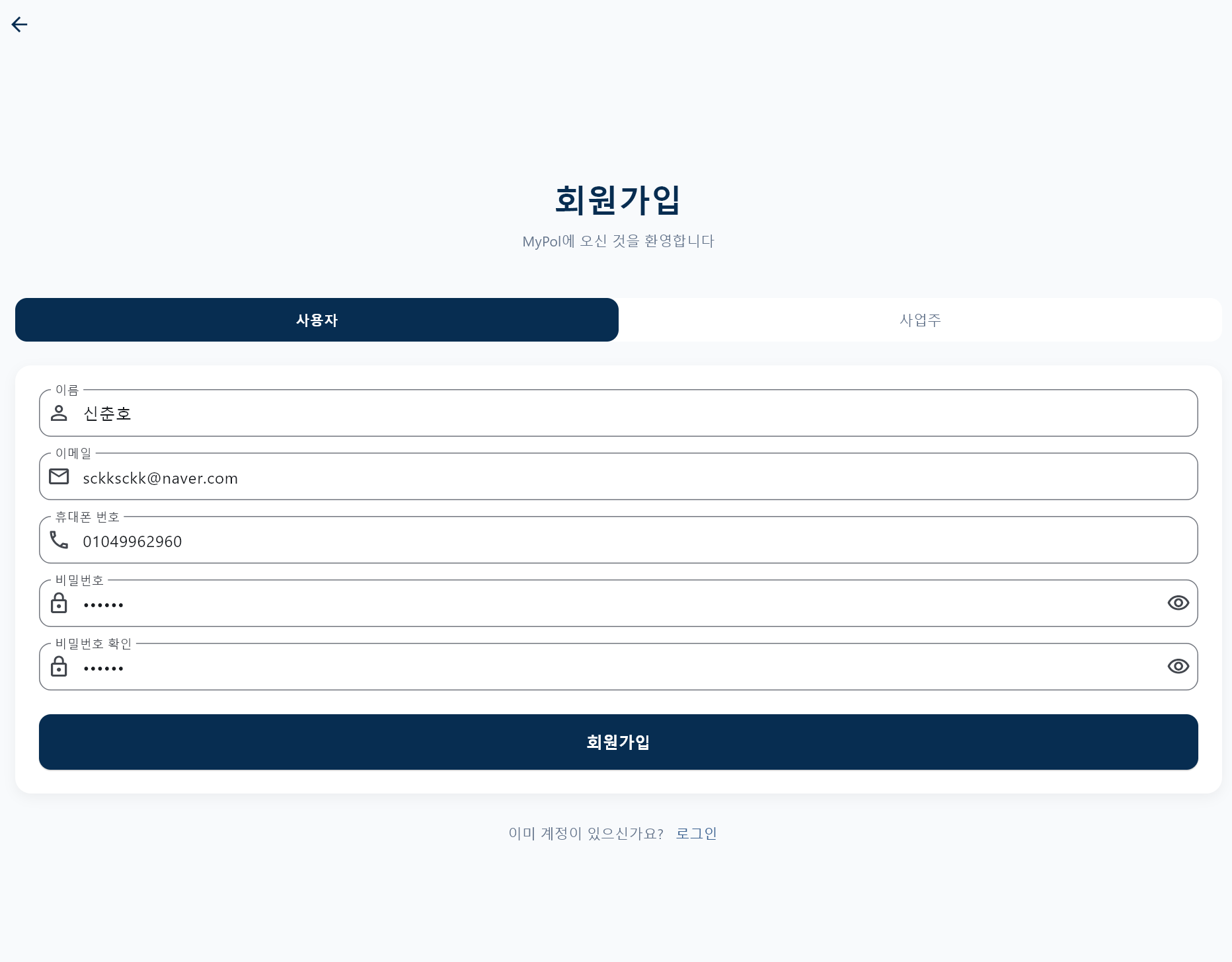 코드 한 줄, 화면 하나하나가 모여 MyPol이 만들어집니다.